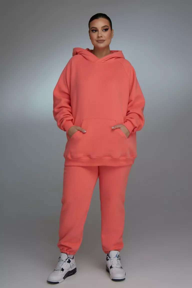 Спортивные джоггеры из трикотажа с пич-эффектом повседневно-спортивного стиля, на утеплителе. Брюки на поясе-резинке, с боковыми карманами и высокой посадкой. По низу резинка.