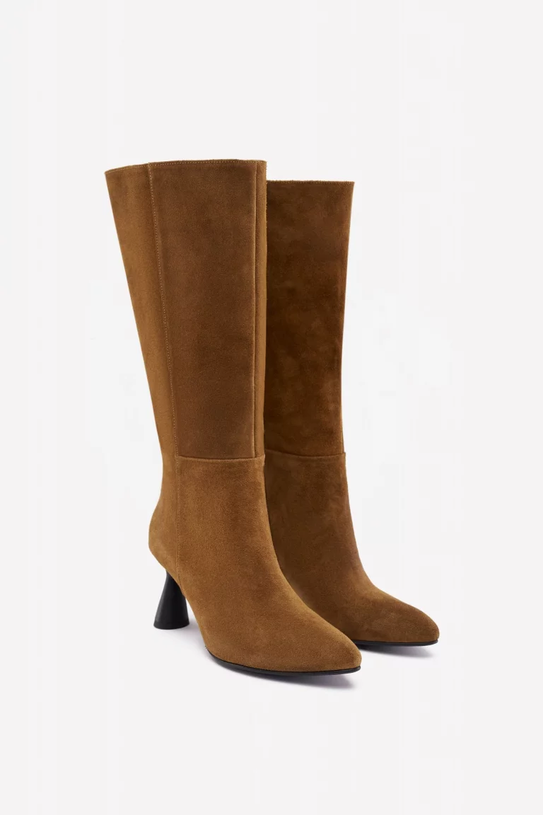 Сапоги из замши с увеличенной шириной голенища, на устойчивом фигурном каблуке. Благодаря функциональной молнии изделие легко снимать и надевать. Голенище гарантирует плотную посадку по ноге любой полноты. Мысок острый. Стелька и подкладка из кожия. Полнота увеличена.