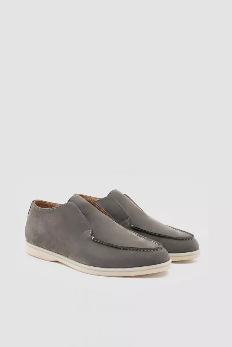 Серые лоферы с высоким язычком и увеличенной полнотой из нубука