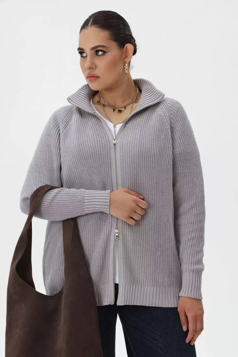Серый вязаный кардиган из хлопка на молнии