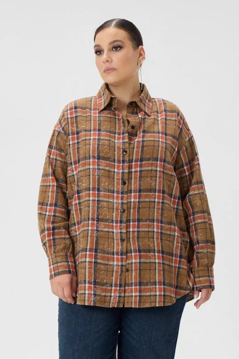 Рубашка relaxed fit с принтом клетка коричневого цвета