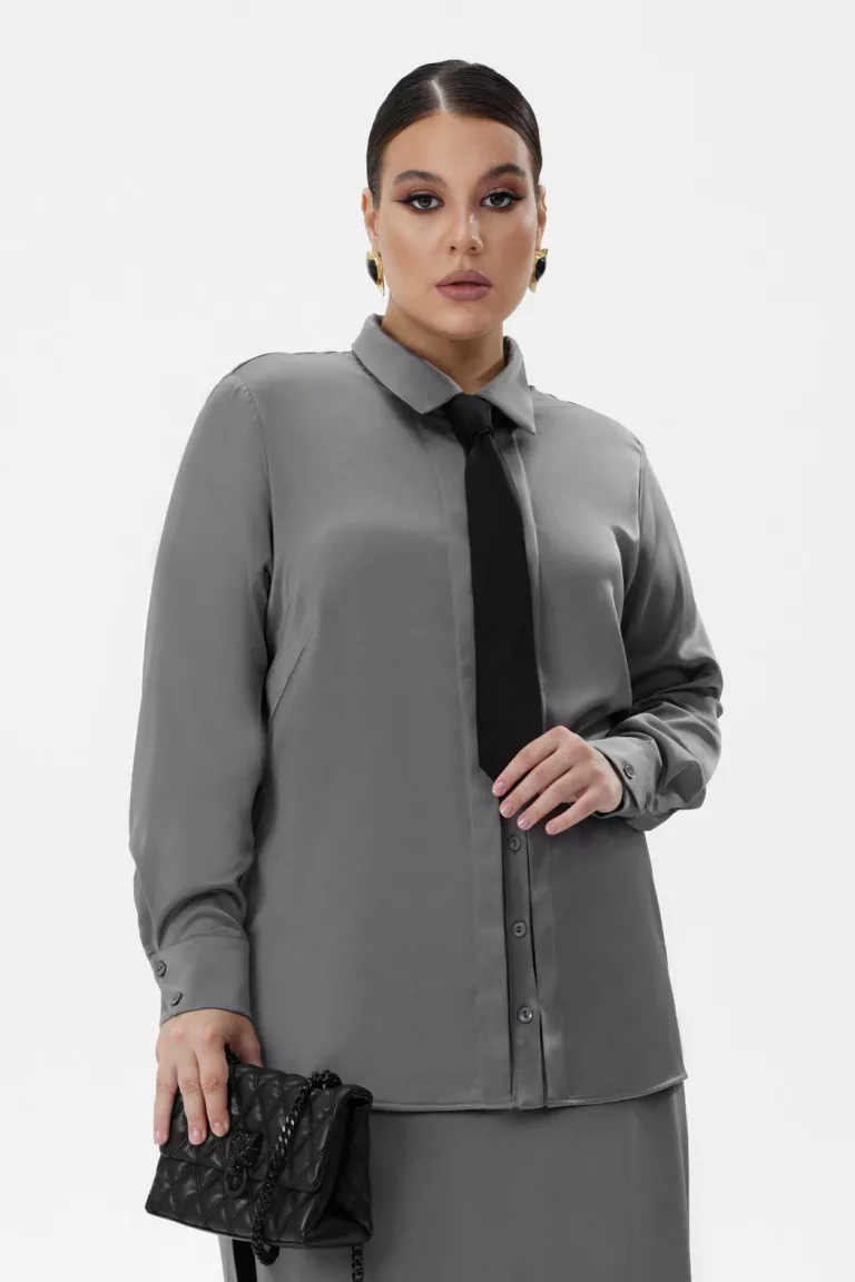 Шелковая рубашка с отложным воротником и двойной передней планкой
