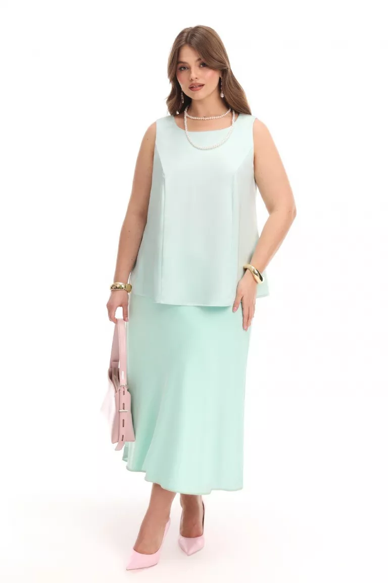Юбка комбинация трапециевидного силуэта из смесовой вискозной ткани с атласной фактурой, на подкладке. Длина миди. Пояс втачной-резинка.