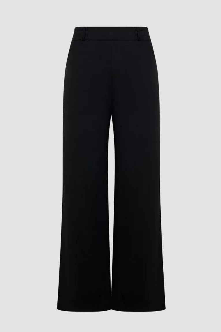 Широкие брюки из облегченной костюмной ткани, regular fit, длина полная. Пояс на резинке сзади. Посадка высокая. Regular fit — это универсальность, благодаря чему вещь в большинстве случаев не висит на теле как мешок, при этом и не прилегает. Карманы с отрезным бочком, посадка высокая.
