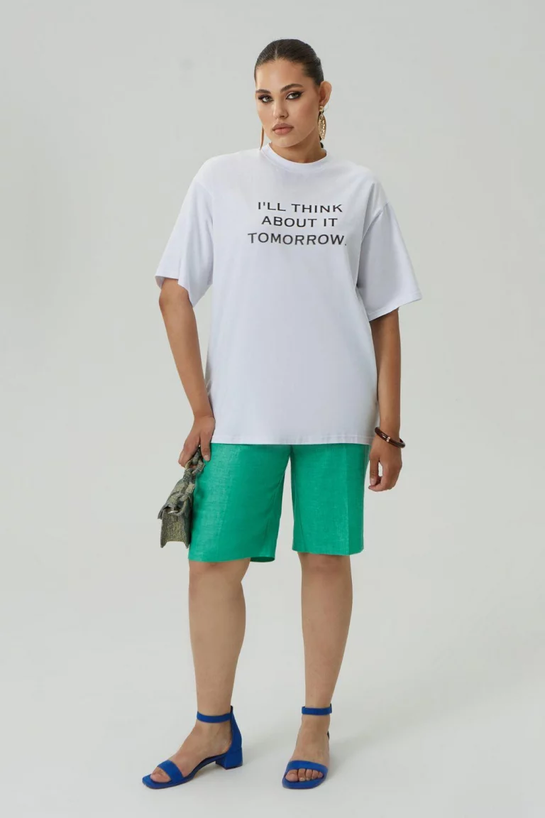 Шорты-бермуды изо льна очень актуальны для летней капсулы. Они подойдут на каждый день или в качестве выразительного делового образа. Красивый изумрудный оттенок разбавит базовые костюмы и нижний гардероб. Рекомендуем сочетать с льняными пиджаками, топами, блузками.