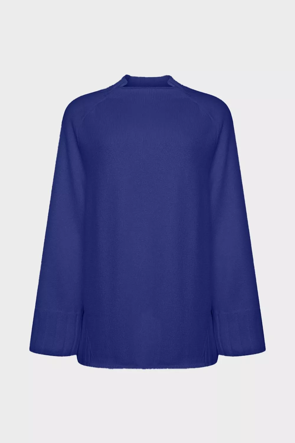 Джемпер релакс фит с асимметричным высоким воротом сзади и коротким спереди из смесового хлопка. Длина до середины бедра. Рукав длинный, реглан, пройма широкая.