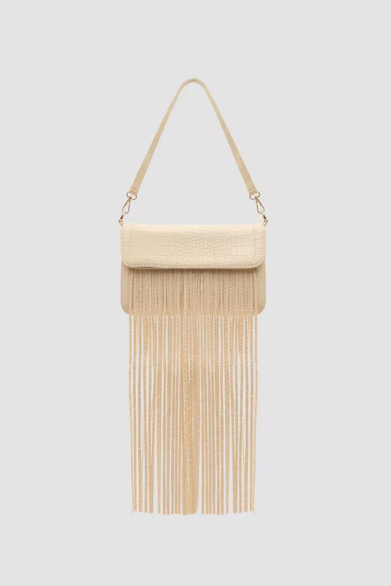 Сумка мессенджер из экокожи с эффектом рептилии и бахромой