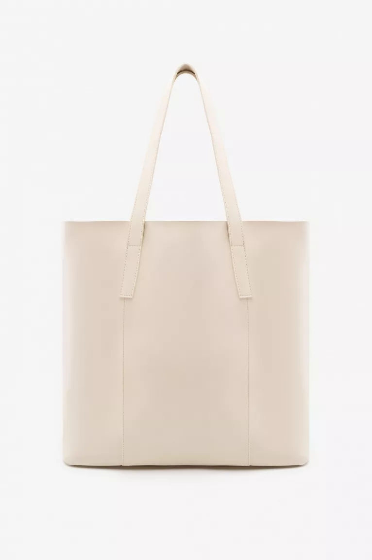 Описание: Сумка тоут из экокожи, без застежки и подкладки. Одно несъемное внутреннее отделение на молнии, один боковой карман.