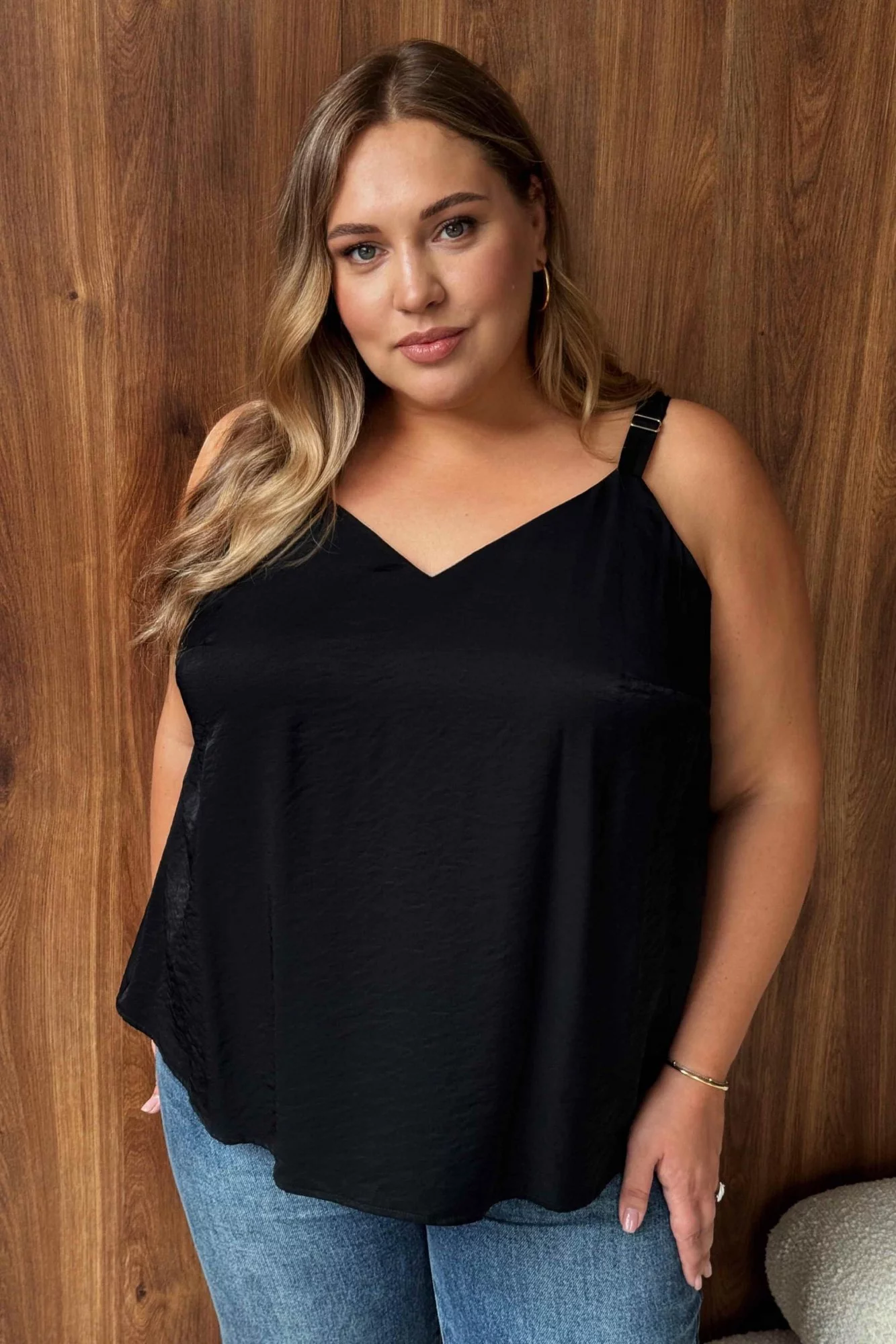 Описание: Топ А-силуэта, на тонких регулируемых лямках из смесовой шелковистой вискозы, в бельевом стиле. Длина до середины бедра. Горловина "V"- образная. Пройма широкая. На