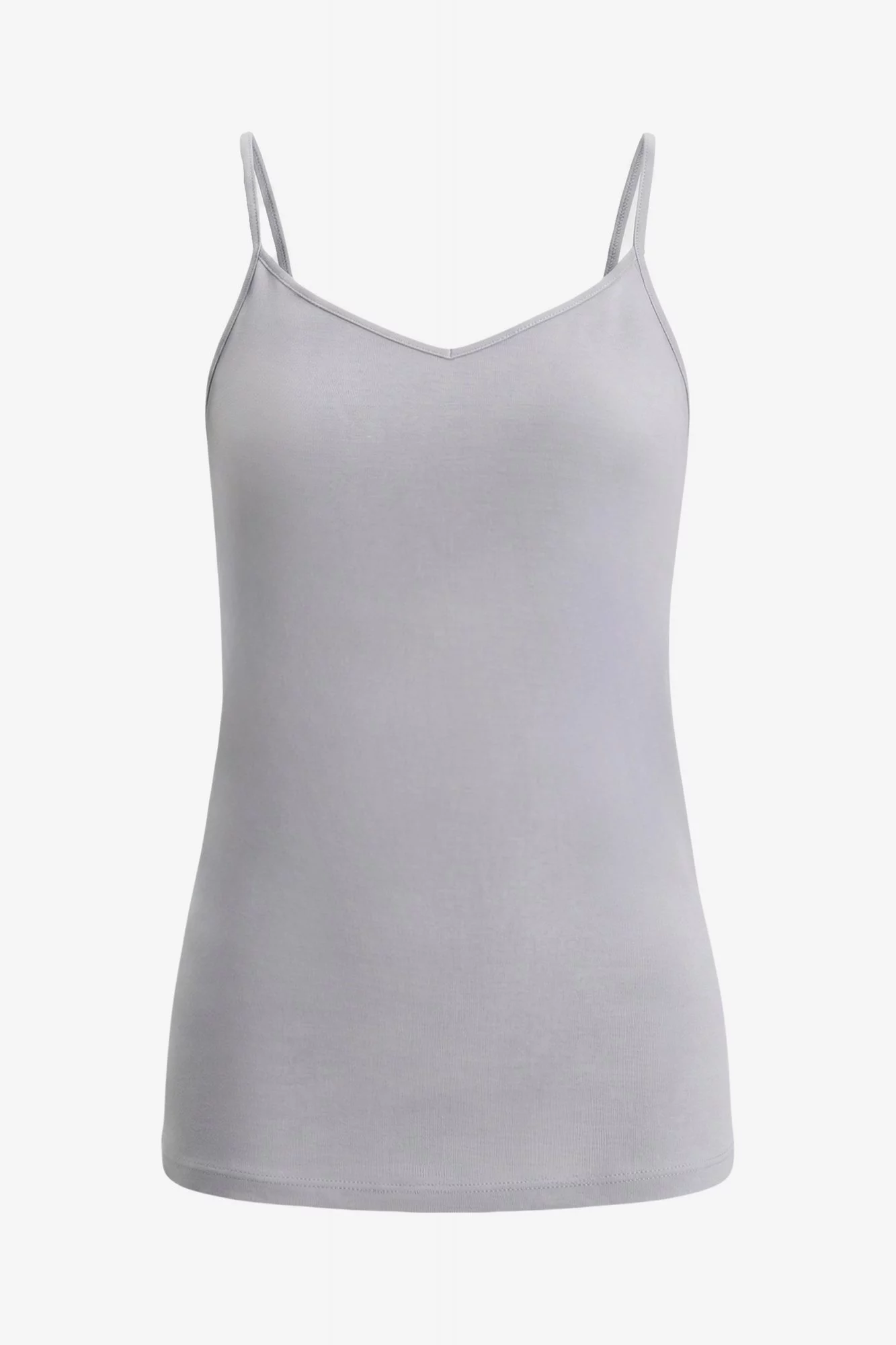 Топ свободного кроя, из трикотажа с хорошей эластичностью, на тонких лямках. Длина до середины бедра. Горловина округлая. Пройма широкая.