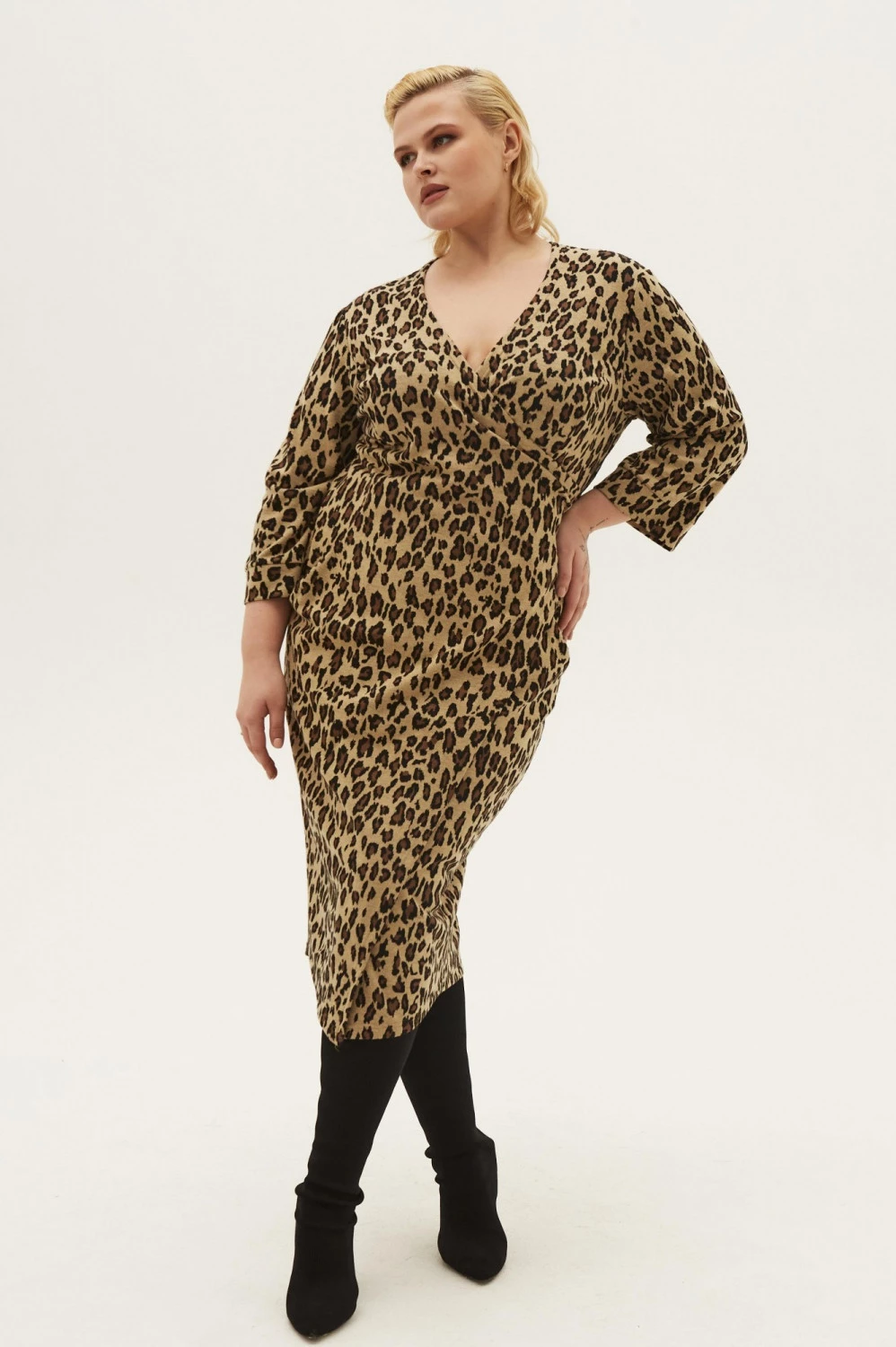 Трикотажное платье на запахе с принтом леопард