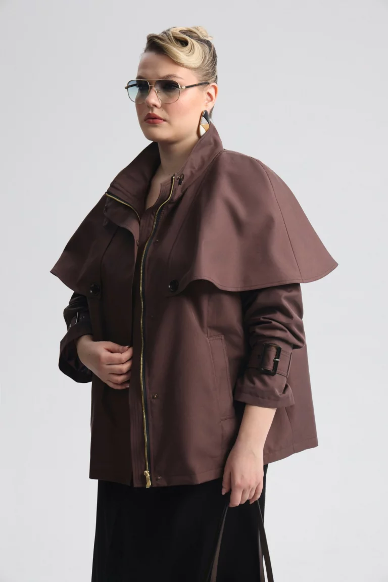 Укороченный тренч со съемной пелериной