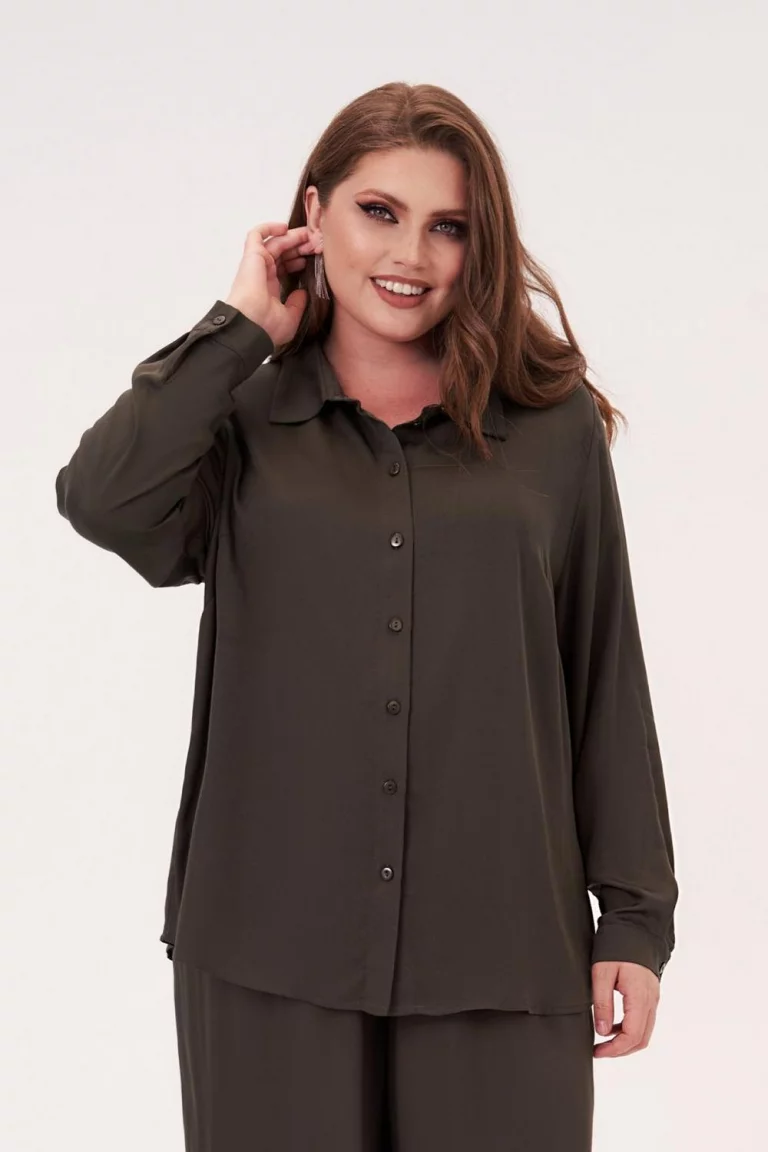 Рубашка свободного силуэта, из вискозы, длина мидия. Воротник стояче-отложной. Спереди застежка пуговицы. Рукав длинный, на отрезной манжете, пройма широкая. Крой relaxed fit отличается достаточным удобством и практичностью. Подобный крой отлично подойдет тем людям, которые хотят иметь определенную свободу при ношении одежды, которая не сковывает движения человека.