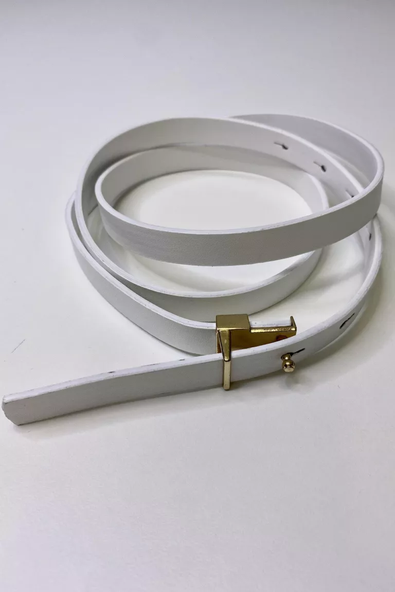 Описание: Ремень из эко-кожи Каре односторонний с треугольной металлической пряжкой. Ширина 1,5 см, длина 125 см.