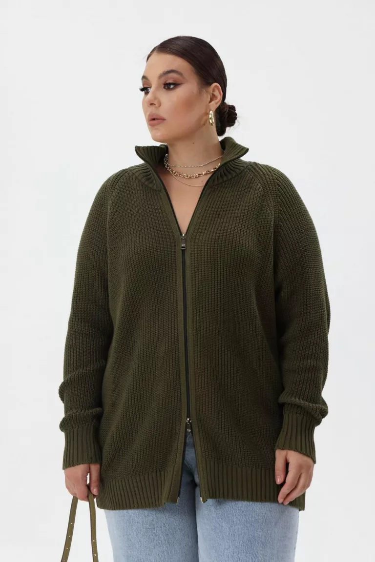 Вязаный хлопковый кардиган с воротником стойка и молнией