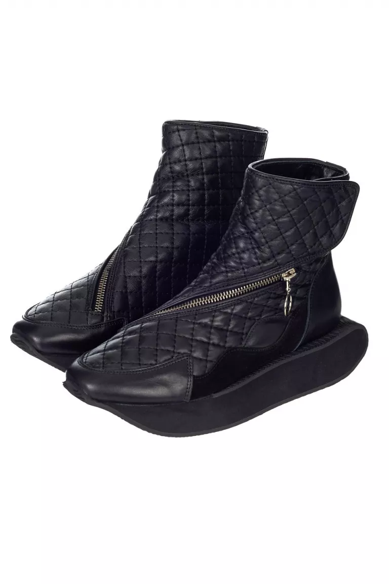 Высокие стеганные кроссовки на молнии черного цвета