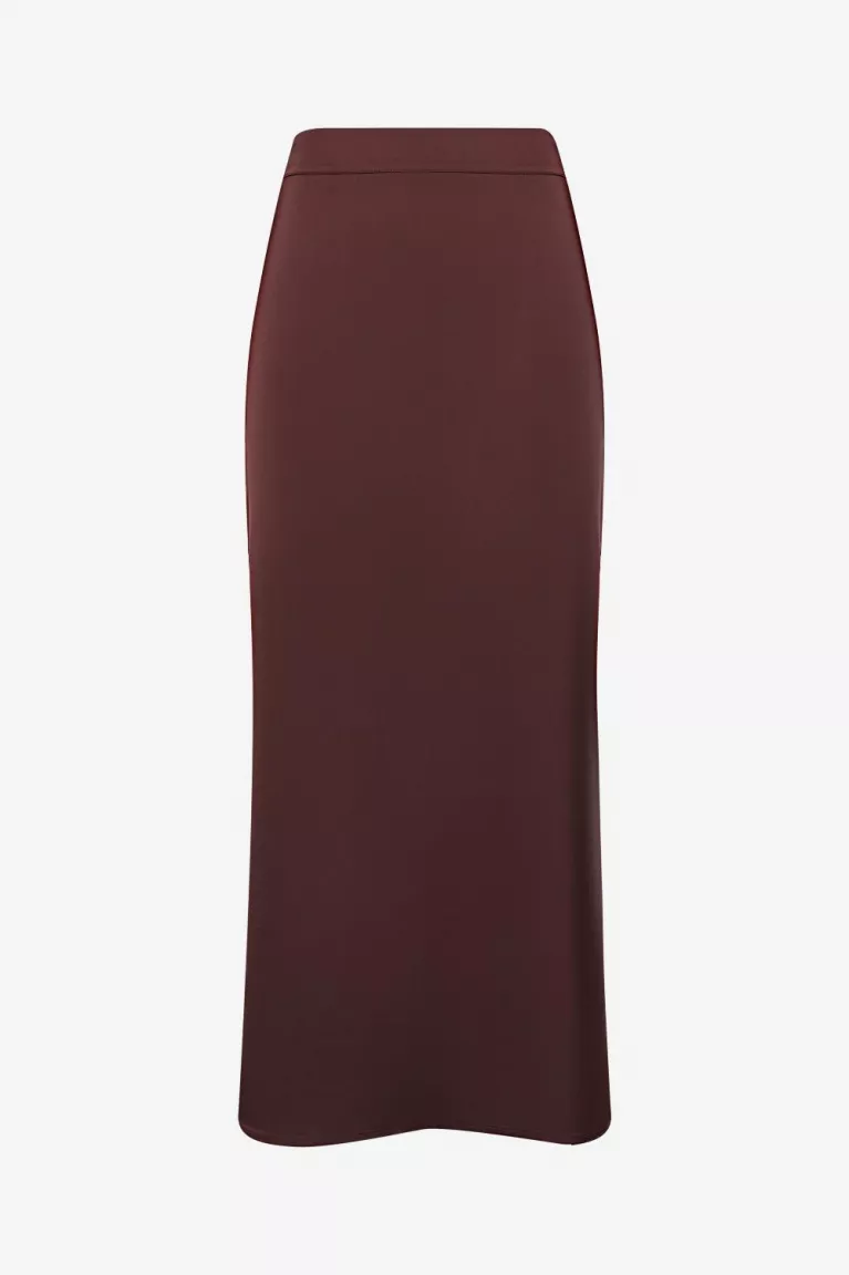 Юбка-годе из смесовой вискозной ткани, с хорошей эластичностью, расклешенная сзади, на подкладке. Длина миди. Пояс втачной-резинка сзади.