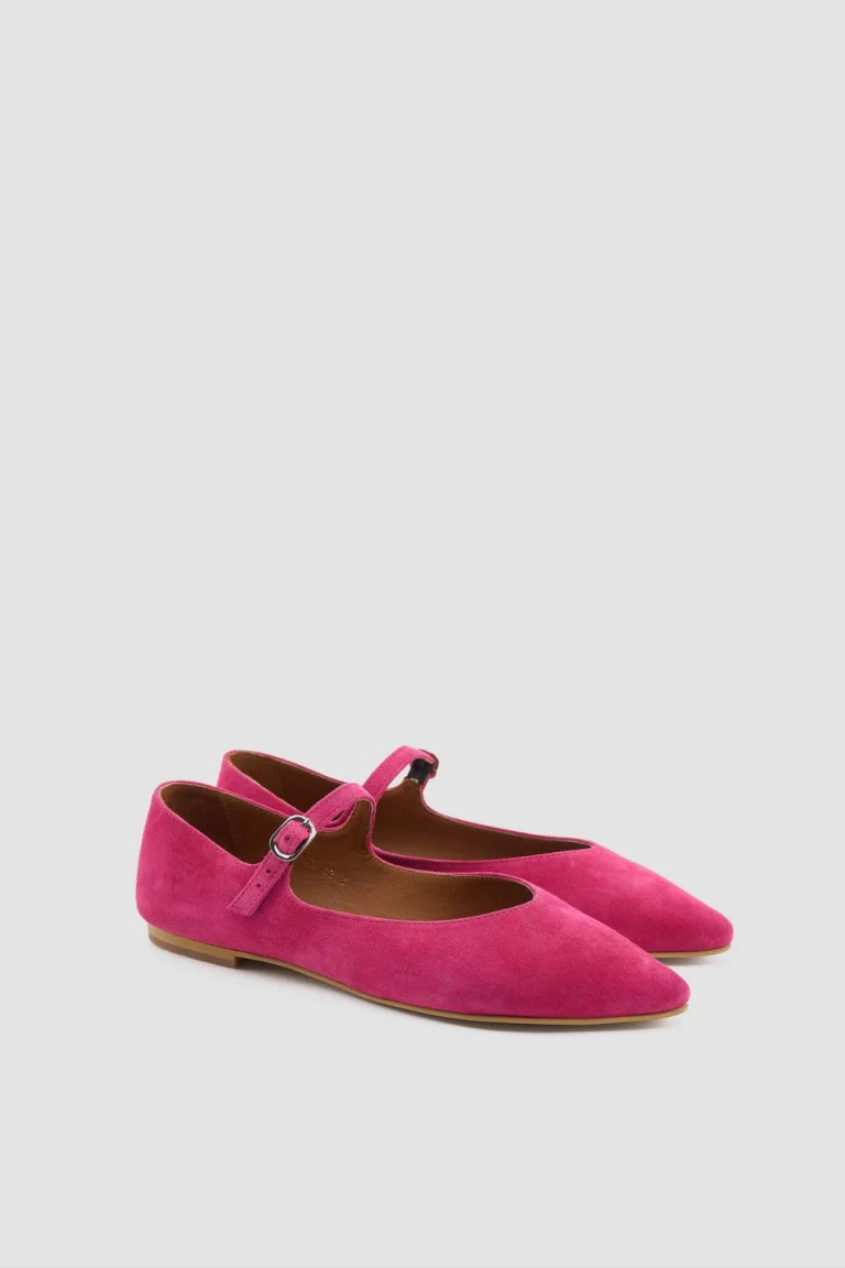 Балетки мэри джейн с ремешком, на низком каблуке из замши. Мыс заостренный. Стелька из кожи. Полнота увеличена.