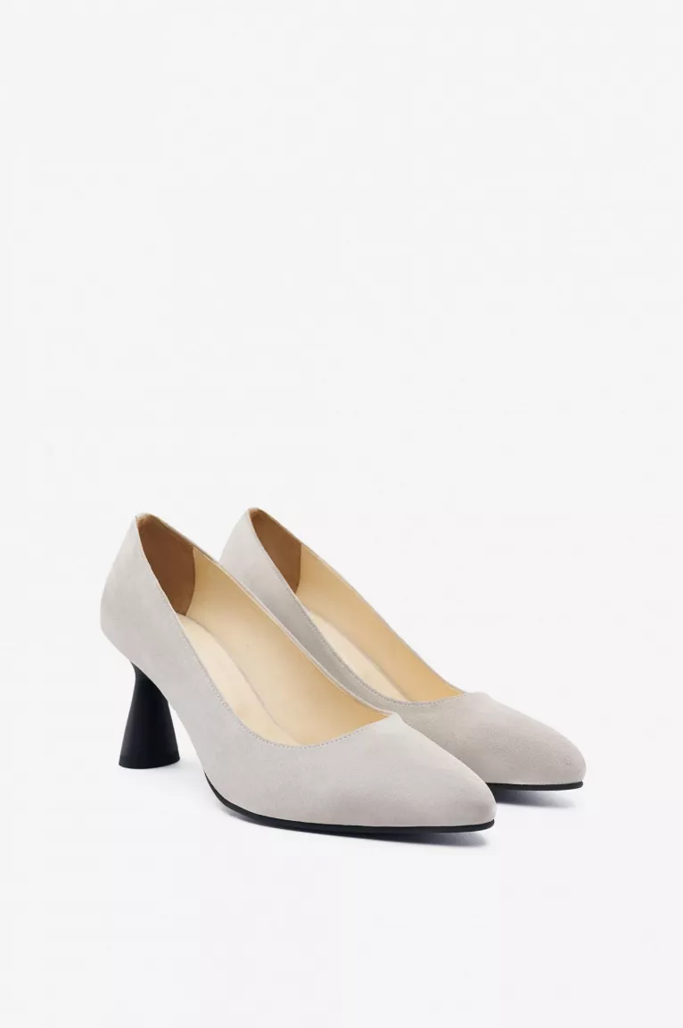 Описание: Лодочки на фигурном устойчивом каблуке, из замши. Мыс острый. Стелька из кожи. Подъем высокий, полнота увеличена.