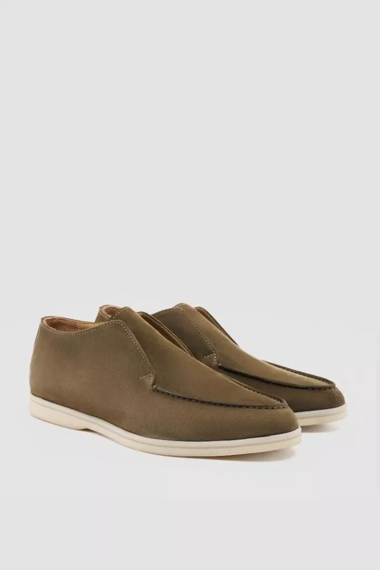 Замшевые лоферы с увеличенной полнотой и высоким язычком