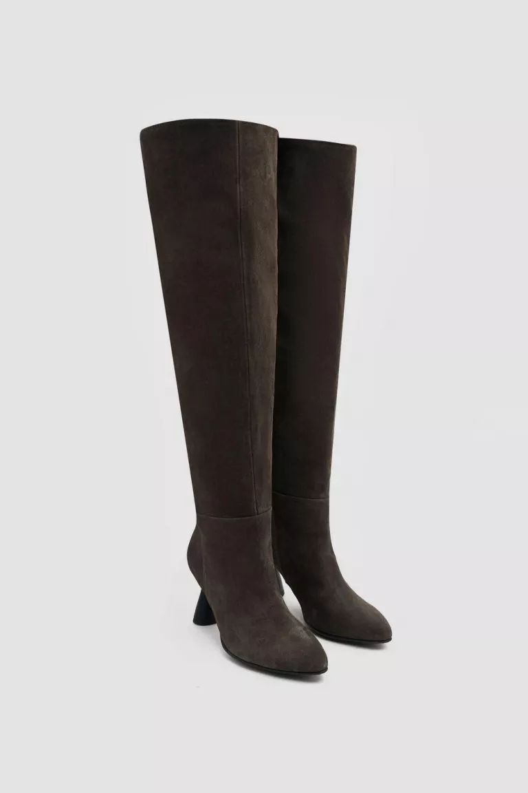 Замшевые максимально высокие ботфорты на устойчивом фигурном каблуке