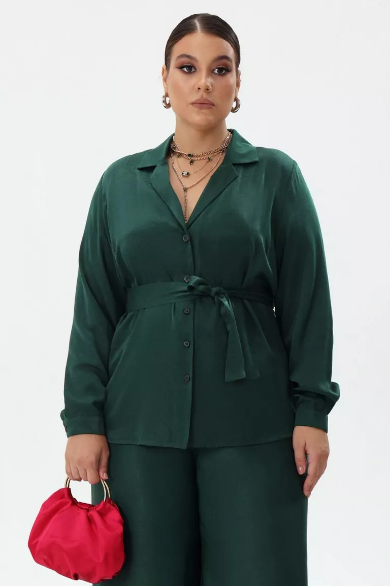 Зеленая рубашка с английским воротником