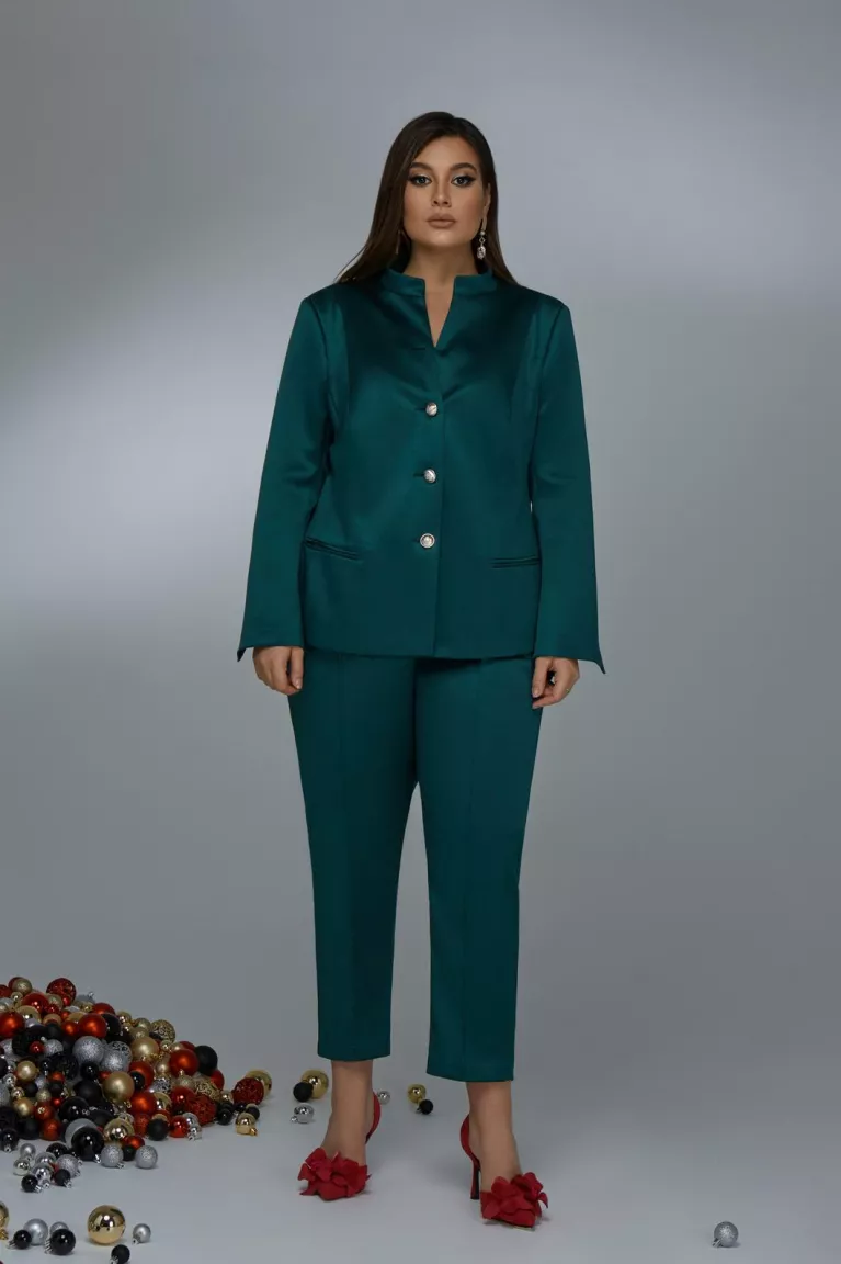 Зеленые брюки дудочки из шелка прекрасно сочетаются с жакетом из костюма. Для завершения эффектного образа рекомендуется добавить обувь на каблуках, сумочку и украшения. В таком наряде вы будете выглядеть неотразимо и уверенно на любом мероприятии.