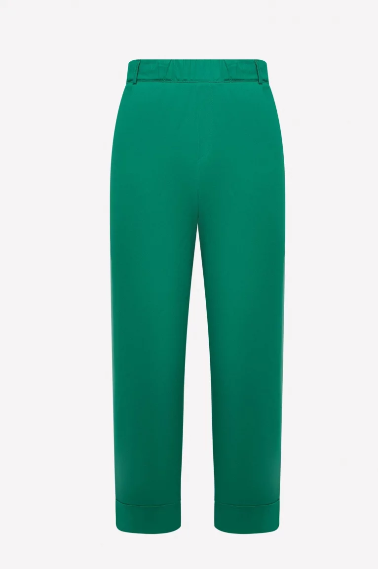 Брюки relaxed fit из смесового хлопка. Пояс на резинке сзади, посадка глубокая. По бокам карманы с отрезным бочком. По низу отворот.