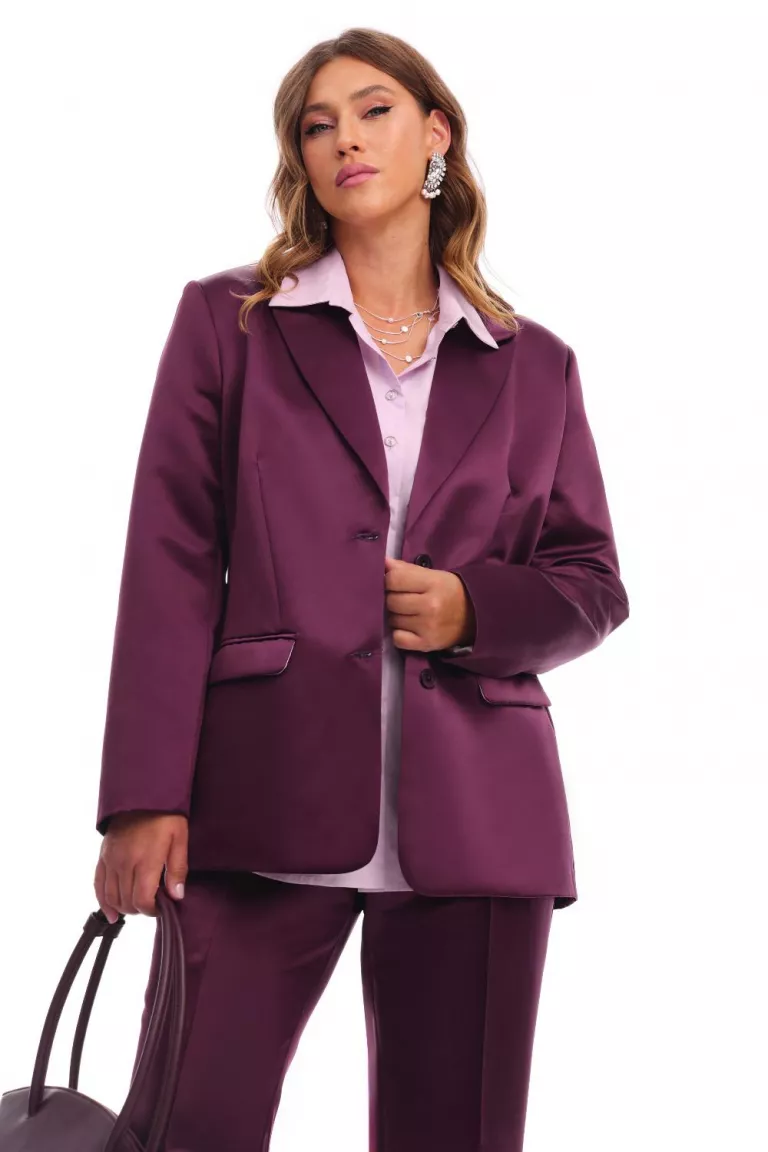 Однобортный пиджак полуприлегающего силуэта, на подкладке и пуговицах. Длина миди. Воротник английский, с лацканами. На спинке рельефы, центральный шов и 2 шлицы. Спереди вертикальные вытачки и внутренние карманы. Рукав длинный, с выраженной линией плеча, пройма углубленная. В качестве застежки пуговицы.