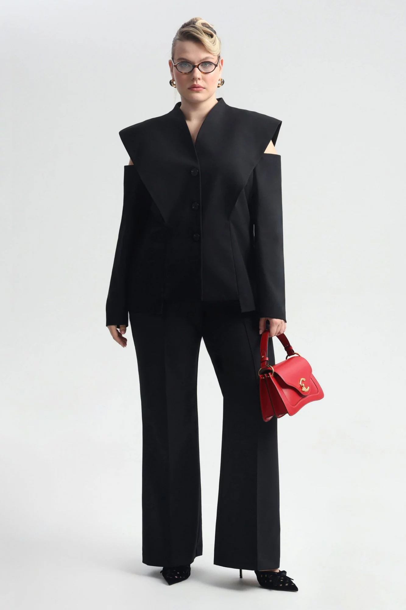 Жакет в маскулином стиле с открытым плечом