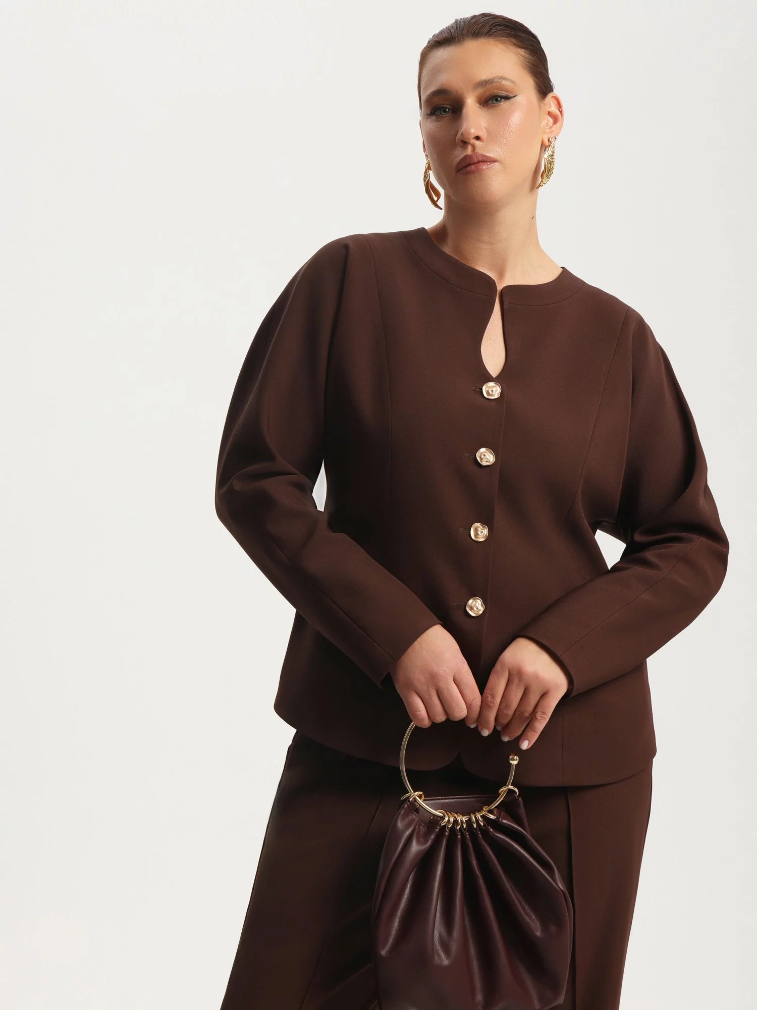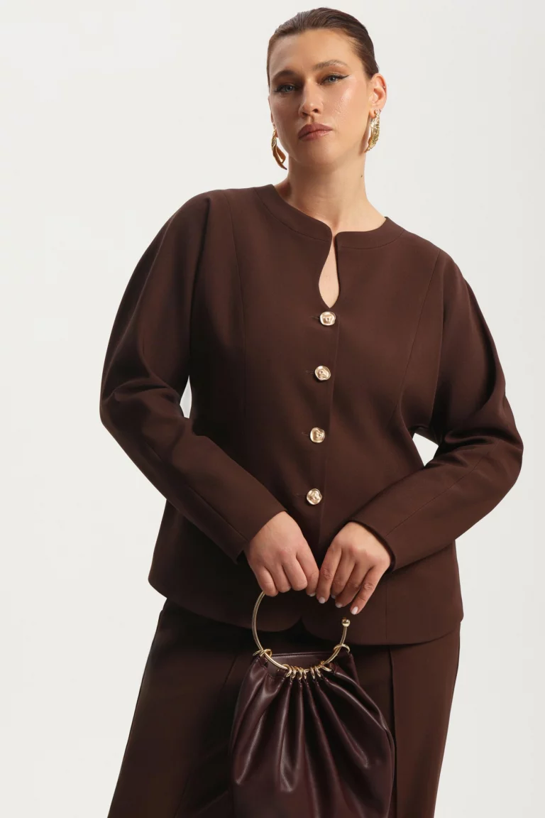 Жакет с фигурным вырезом и воротником стойка