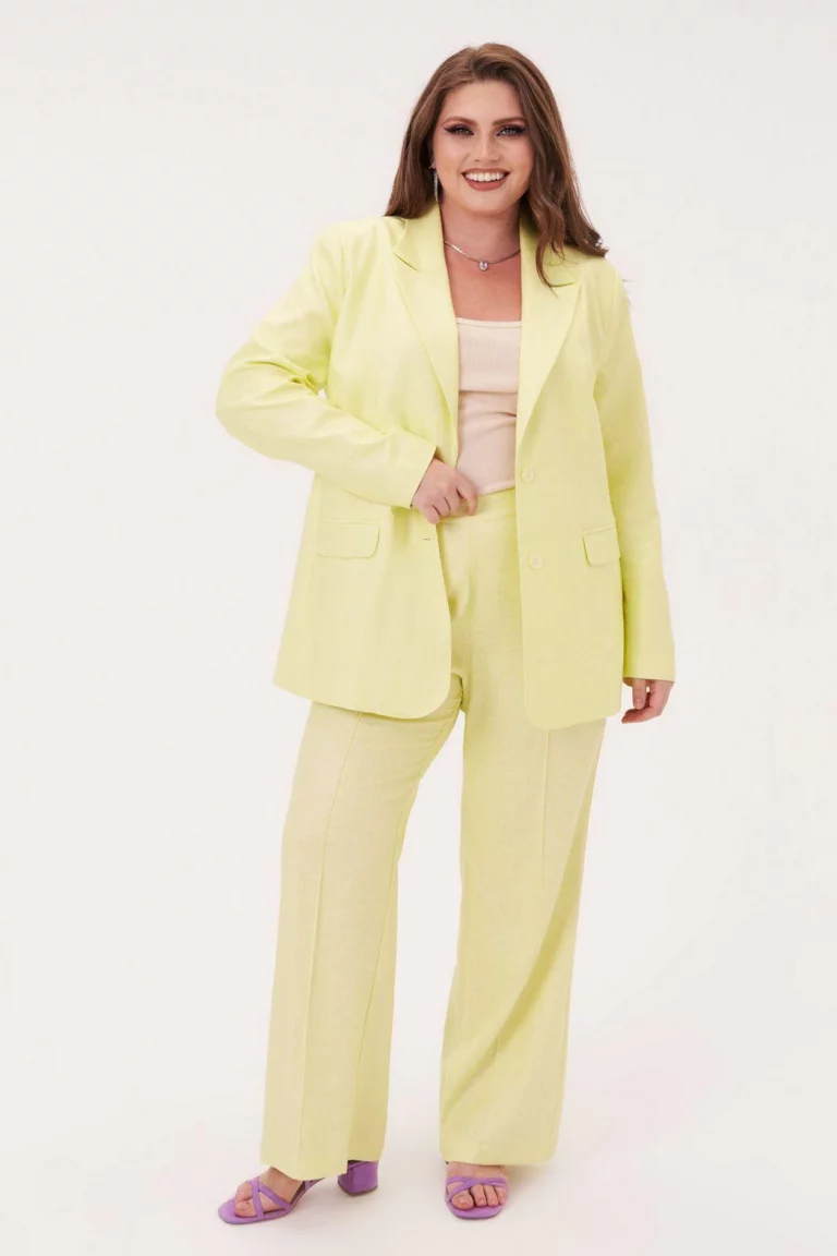 Брюки клеш изо льна желтого цвета
